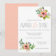 Whimsical floral hand painted wedding invitation, or bridal shower invitation. Peach ampersand. Hipster, country, shabby chic.