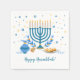 A Hanukkah scene with a menorah, sufganiyot (doughnuts), dreidels, and olive branches is rendered in a watercolor effect on this Chanukah napkin. Great to use at a Hanukkah party and for any age. Available with matching products.
