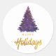 Watercolor Gold Happy Holidays Tree Design Classic Round Sticker