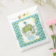 Get ready to roar with excitement! These charming favour bags are the perfect way to thank your guests for celebrating your little one. The design features a sweet watercolor illustration of a baby dinosaur hatching from its egg, surrounded by foliage, a charming bird, and a cute little blue dino car all on a light blue background with a subtle dino footprint pattern. The bag can be personalised with the mother's name and the date of the baby shower, making it a unique and memorable keepsake. Ideal for a boy's baby shower, these bags can be filled with treats, small toys, or party favours. The fold-over top is secured with a small clothespin (not included), adding a rustic and cute touch.