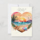 Gorgeous watercolor Hawaiian beach setting design. Features a sunset, palm trees, the ocean and glitter accents behind the heart design. Perfect for a getaway or beach destination wedding. Features a pale yellow/cream colour background. The back has an enlarged version of the heart design and can be personalised with any special quotes.