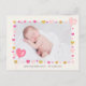 cute baby announcement with watercolor hearts photo border. Choose between two different background and customise it with your own text and photo.