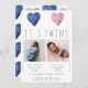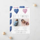 Modest and sweet watercolor blue and pink hearts for little baby twins with photos announcement!