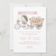Locally Grown Baby Shower Invitation - Cute hedgehog riding a bike pulling a wagon of spring flowers. Editable banner with whatever text you'd prefer. Available in a series of colours to suit your preference.