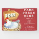 Perfect outdoor banner for your farm fresh eggs, can be attached to fencing, hay bales, or even the side of a barn! Watercolor laying hen in nest with wooden "eggs" arrow sign on dark red background. Add your own additional text for contact details, price, etc.