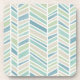 Watercolor Herringbone, Blue, Mint, Beige Coaster