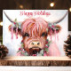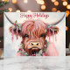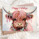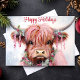 Watercolor Highland Cow Happy Holidays Holiday Card