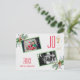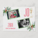 Unique Typography, Watercolor Holiday Arrangement Family Photos card. It features watercolor winter greenery, holy berries, cone, pine, christmas ball and glass with champagne as Y from word JOY. Use Personalise tool to add your info. More on my Christmas with Joy Collection.