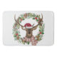 Watercolor wreath made up of twigs, berries, holly and pinecones-topped off with a dusting of snow.  Inside the wreath is a deer head dressed for winter with a red knit stocking cap and plaid scarf.  Trendy and traditional is this piece of Christmas art.