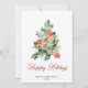Watercolor Holly Berry Christmas Tree Greeting Holiday Card