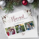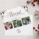 Celebrate the holiday season with our beautiful family photo Christmas card! Adorned with elegant calligraphy script and watercolor holly berry branches, this card exudes festive charm. The front proudly displays the words "Merriest Christmas" and offers a space for you to personalize it with your family name and three cherished photos. On the back, you will find a holly berry wreath where you can personalize with your family monogram at the bottom. Share the joy and warmth of the season with this lovely card.