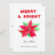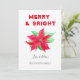 Merry and bright Christmas card. Watercolor poinsettia flower, traditional card. Please personalise it with your details.