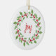 Watercolor Holly Wreath Ceramic Tree Decoration