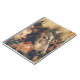 A beautiful watercolor art piece of 3 horses on a tan and brown background.