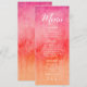 Watercolor Hot Pink and Orange Wedding Menu