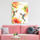 Watercolor Hummingbird and Flowers Design Canvas Print