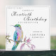 A beautiful modern elegant adult surprise birthday invitation with a hand-painted watercolor hummingbird on a flowering branch. Customisable for any birthday milestone