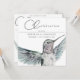 A hand-painted watercolor hummingbird with stunning detail and subtle hues of aqua and rose decorates this unique, delicate and loving celebration of life invitation in classic black and white