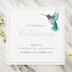 A hand painted watercolor ruby throated hummingbird on a delicate and loving celebration of life invitation