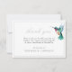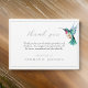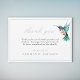 A hand painted watercolor ruby throated hummingbird on a delicate and loving thank you card