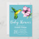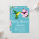 Watercolor Hummingbird & Purple Flower Baby Shower Invitation