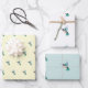 A hand painted watercolor ruby throated hummingbird on beautifully elegant wrapping paper sheets in soft yellow, mint and white
