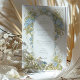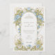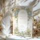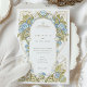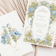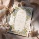 Rendered in a delicate painterly style, the florals and foliage echo the elegance of early 1900s decorative arts. The refined typography pairs classic serif fonts with subtle modern touches, while the initials and year are subtly integrated into the ornamental border. The back of the card complements the front with a mirrored floral crest featuring blue wildflowers and stylised tendrils, emphasizing elegance and harmony. Ideal for romantic, garden, or classical wedding themes.