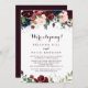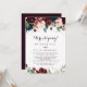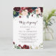 This watercolor illustrated fall elopement reception card is perfect for a modern post elopement party. The design features artistic hand-painted watercolor navy blue, burgundy, red, blush roses and peonies with elegant green leaves, inspiring the colourful idyllic autumn beauty.