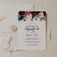 This watercolor illustrated fall wedding breakfast invitation is perfect for a simple family and friends the morning after the wedding get together. The design features artistic hand-painted watercolor navy blue, burgundy, red, blush roses and peonies with elegant green leaves, inspiring the colourful idyllic autumn beauty.