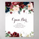 This watercolor illustrated fall wedding open bar sign is perfect for a simple wedding. The design features artistic hand-painted watercolor navy blue, burgundy, red, blush roses and peonies with elegant green leaves, inspiring the colourful idyllic autumn beauty.