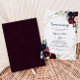 This watercolor illustrated geometric gold Quinceañera invitation is perfect for a simple 15th birthday party. The design features artistic hand-painted watercolor navy blue, burgundy, red, blush roses and peonies with elegant green leaves, inspiring the colourful idyllic autumn beauty.