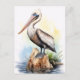 Watercolor Illustration of a Pelican Postcard