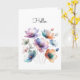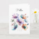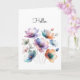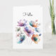 A watercolor illustration of pretty flowers in teal, peach, pink, purple, blue. This botanical illustration art is perfect for a simple Hello greeting, but you can change the text to your preferred greeting. AI assisted graphic purchased with commercial use. Artwork: DreamCafeArt