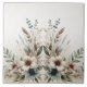 Watercolor Ivory Blue Flowers Ceramic Tile