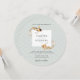 Unique round wedding invitation featuring a pair of koi fish. The background is a blue Japanese inspired pattern.