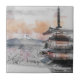 Watercolor Japanese Pagoda & Fuji Tile