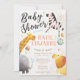 This beautiful baby shower invitation features jungle animals painted in watercolor style featuring a zebra, lion, elephant, and giraffe.