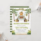 The earthy green tones, botanical details, and subtle gold confetti accents create a fresh, modern safari look that feels both playful and stylish. Hand-painted textures and charming character features add warmth and personality, making this design perfect for little animal lovers.