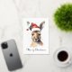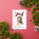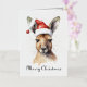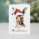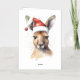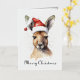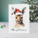 Celebrate a "down under" holiday with this stunning watercolor Christmas card featuring a gentle kangaroo wearing a bright red Santa hat. The artwork captures soft, feathery fur textures and delicate paint splatters, creating an artistic and soulful aesthetic against a crisp white background. This dapper marsupial is the perfect choice for animal lovers, Australian expats, or anyone wanting to send a "Merry Christmas" wish that feels both exotic and heartwarming.