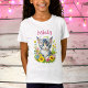 Ai art depicting a cute little grey striped tabby cat kitten sitting in a bunch of pretty yellow, pink and blue flowers. Add your child's name in the personalise area. Pretty watercolor wall art for a child's nursery or bedroom.