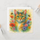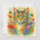 A sweet watercolor card featuring a cat with bright green eyes, surrounded by colorful flowers and bees. Perfect for any occasion – to say hello, thank you, or just to brighten someone’s day.