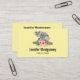 A business card with an adorable watercolor design. Koala bear mum and baby. Baby is riding on momma's back. Standing on a tree branch. A hibiscus flower bouquet underneath them. Banana yellow background.