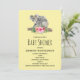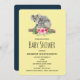 A baby shower invitation with an adorable watercolor design. Koala bear mum and baby. Baby is riding on momma's back. Standing on a tree branch. A hibiscus flower bouquet underneath them. Banana yellow background.