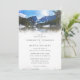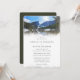 Watercolor mountain wedding invitation featuring lakeside mountain tops with conifer trees. Perfect card design for your destination wedding party.