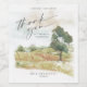 Peaceful landscape scenery of rolling hills and majestic trees is used in this wedding stationery collection to set a warm and intimate tone for your wedding. A handwritten, signature font combined with a modern sans serif adds an elegant touch. The "Thank You" wine label shown here features rolling hills and trees in shades from golden yellow to sage green with a background of dreamy watercolor paint splashes. Add your personal message, names and wedding date using the provided template. Search ID786 to see other pieces and colour choices for this set.