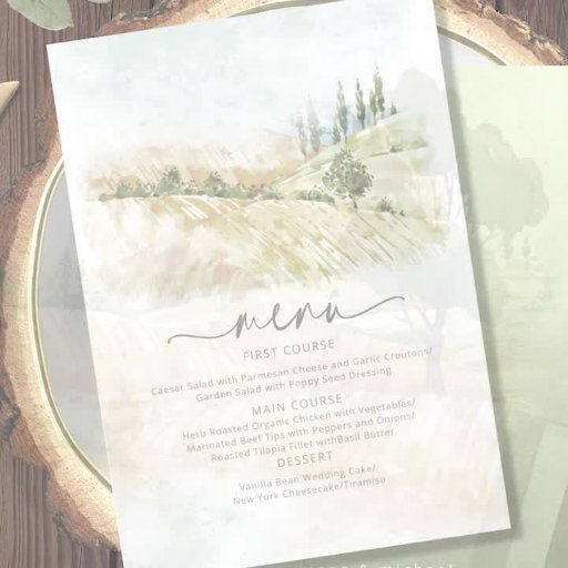 Peaceful landscape scenery of rolling hills and majestic trees is used in this wedding stationery collection to set a warm and intimate tone for your wedding. A handwritten, signature font combined with a modern sans serif adds an elegant touch. The paper napkin shown here features hills and foliage in shades from golden yellow to sage green against a background of dreamy watercolor paint splashes. Search ID786 to see other pieces and colour choices for this set.