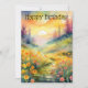 Watercolor Landscape with Buttercups and Sunset Holiday Card
