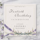 A beautiful modern elegant adult birthday invitation designed with hand-painted watercolor lavender flowers. Customisable for any birthday milestone. Script in charcoal with a sage border