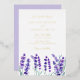 Invite family and friends to your wedding with this floral gold foil pressed invitation. It features watercolor illustrations of lavender flowers and elegant script. The lavender floral wedding is perfect for spring weddings. Personalise this lavender wedding invitation by adding your wedding details. This gold foil wedding invitation is available in other foil finishes.