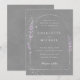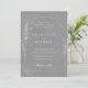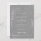 Watercolor lavender arranged in an arch with watercolor spatter and a grey background. Elegant floral wedding invitation.